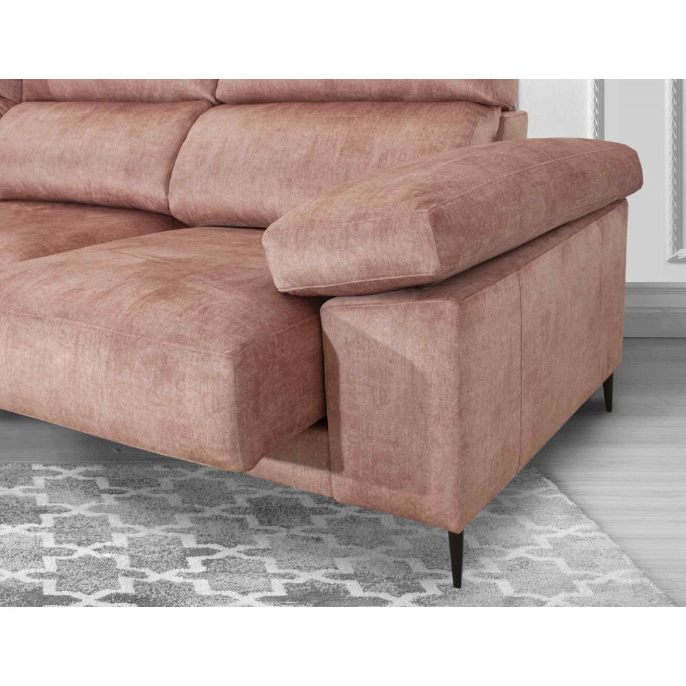Sofá de diseño contemporáneo, lo cual hace que no pase de moda, sus patas altas aligeran su presencia y los brazos almohadillados le aportan un diseño y confort inigualables. Gracias a sus rellenos de nueva generación nos ofrece una sentada con una sensación de confort total. Recoge perfectamente la zona lumbar y cervical y tiene integrado un sistema de asientos deslizantes y cabeceros abatibles que aportan un máximo confort. Es un sofá diseñado para aquellos que buscan comodidad, elegancia y sencillez.